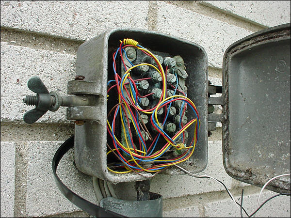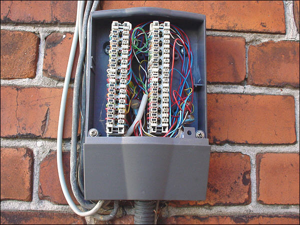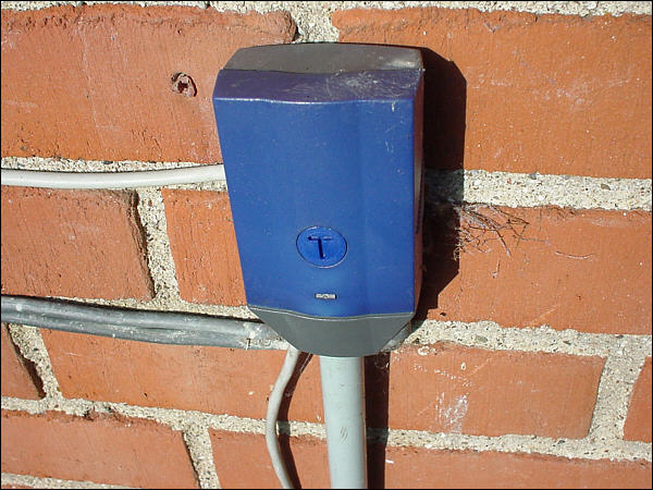 Parfordeler på udvendig husvæg. Teleselskabets jordkabel ender her og føres videre til første stik (NTP - NetTermineringsPunktet).