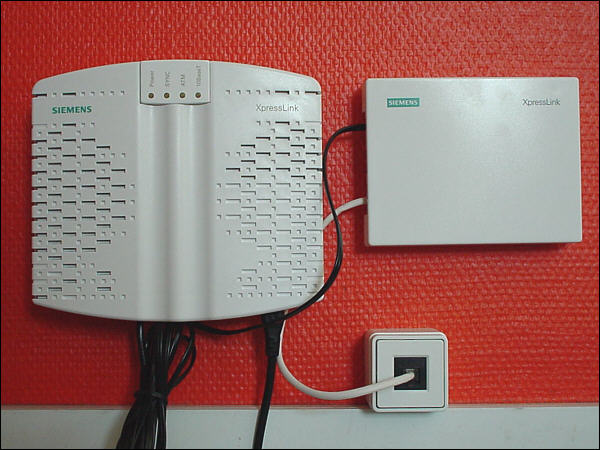 | Siemens skillefilter til POTS, dvs til alm analog telefonlinje. "Line": her tilsluttes en ledning fra KAP/telefon-stikket. "Phone": her kan tilsluttes en alm telefon med RJ11-stik. "ADSL": her forbindes en ledning til ADSL-modemmet. Andre modeller: Siemens Xpresslink | Ericsson. |