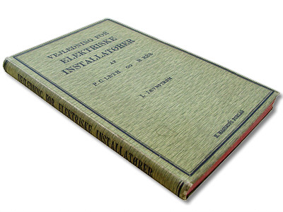 | F. C. Leth og H. Rée: Vejledning for elektriske Installatører, 1907 (udkom første gang i 1903). "Denne bog, som er udarbejdet efter Opfordring af Københavns Magistrat, har til Hovedformål at tjene som Vejledning for dem, der ville indstille sig til Examen for autoriserede Installatører af elektriske Anlæg i København". På billedet ses første del, der handler om jævnstrøm. Anden del handler om den i dele af København da nys fremkomne vekselstrøm. |
