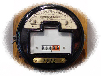Nedenfor følger en forklaring på betaling af elektricitet fra en bog fra 1897-98. Det var på jævnstrømmens tid. Forsyningsspændingen var på 110 volt og elprisen til lysforbrug var i København 50 øre pr kWh. Ligesom man paa en Gasmaaler kan aflæse Gasforbruget i en vis Tid, og man saa betaler for dette til Gasværket, der har sendt En Gassen igennem sine Ledninger, saaledes kan man ogsaa i de Byer, som har Elektricitetsværker – elektriske Centralstationer, som de kaldes – maale Elektricitetsforbruget i et Hus ved Hjælp af en Elektricitetsmaaler. Brugsgenstande med variabel effektBrugsgenstande med skiftende forbrug er ikke velegnede til en simpel aflæsning af effekt med påfølgende matematisk udregning a la ovenstående. Resultatet ville blive misvisende. Der ville blive tale om, hvad man kunne kalde for "worst case".Eksempler på brugsgenstande med variabel optaget effektRegulatorer, der slutter strømmen til og fra efter behov, er strømbesparende og i mange tilfælde også nødvendige, fx for at forhindre, at et køleskab forvandler sig til en fryser. En termostat er en sådan regulator. Ved belysning består regulatorer fx af skumringsrelæer og PIR-følere.HvidevarerHvidevarer inden for denne kategori er fx køle- og fryseskabe. Kompressoren i sådanne hvidevarer starter og stopper løbende for at opretholde en indstillet temperatur. Så længe kompressoren kører aftages der måske en effekt på 100 watt, men herefter vil der være et tidsrum af ubestemt længde, hvor der slet ikke bruges noget strøm.En vaskemaskine har også et yderst varieret elforbrug i løbet af en vask - så skal vandet varmes op, så skal tromlen dreje osv. ComputerEn computer har måske nok en strømforsyning, som kan yde 300 W. Men det betyder altså ikke, at computeren nødvendigvis gør brug af så stor en effekt. Strømforbruget varierer løbende alt efter hvad man foretager sig på computeren.Apparater der varmer eller kølerApparater med elektriske varmelegemer har ofte en indbygget termostat, som slår elektriciteten til og fra med henblik på at opretholde en indstillet temperatur. Det gælder fx en ovn, en toast-maskine og en kaffemaskine, der har brygget færdig og blot skal holde kaffen varm. En elkoger derimod trækker effekt uden pause indtil vandet har nået kogepunktet.EnergimålerenFor at få en idé om energiforbruget for brugsgenstande, hvis effektoptag varierer, er en elektrisk energimåler velegnet. En energimåler beregnet til 230 volts brugsgenstande kan flere steder lånes hos det lokale elselskab. Energimåleren skydes ind mellem brugsgenstand og stikkontakt.