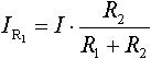 Strømstyrken gennem en af to parallelt koblede resistanser er lig med den samlede strøm I multipliceret med den 'ikke aktuelle' resistans modstandsværdi, delt med summen af de to resistanser.