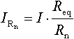 Strømstyrken gennem den n'te parallelle resistans IRn er lig med den samlede strømstyrke I multipliceret med den ækvivalente resistans Req for de parallelt koblede resistanser, delt med den n'te resistans Rn.