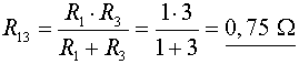 Anvendes den første strømdelerformel må den ækvivalente resistans R13 for R1 og R3 findes først, eftersom der er mere end to resistanser i parallelkoblingen.