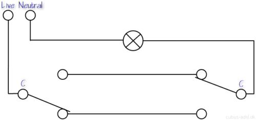 Wiring diagram of the C-type 2-way switching circuit. The circuit is only used with low voltage for reasons stated above.