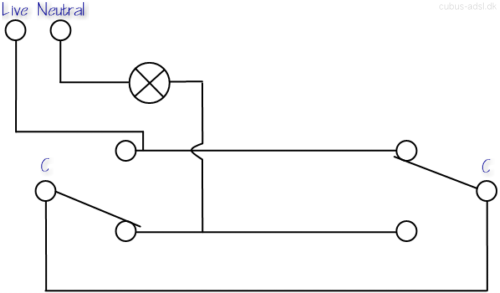 There are three possible wiring schemes. For convenience they are named A, B and C in this article. Only the A- and B-type wiring schemes are used in ordinary lighting circuits. The C-type wiring scheme might be used in low voltage circuits.